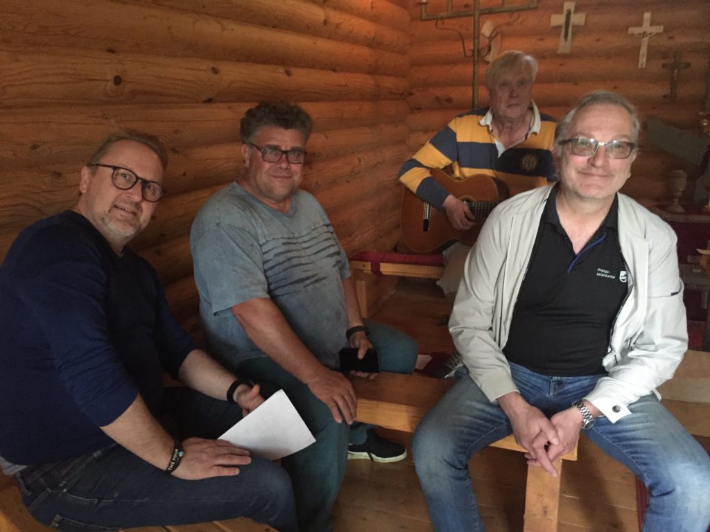 22.6.2020 Kesämies Mikael kylässä Kouvolassa: Reijo Vaurula, Anssi Tiittanen, Arto Sahamies, Markku Toimela